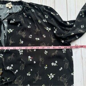 Nach Womens Sz L Horse Novelty Print Hand Drawn Pattern Blouse Top