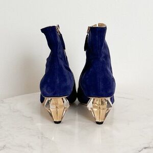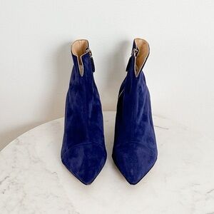 NEW MARION PARKE Navy Suede Pointed Toe Zip Up Heel Ankle Boots Size 37 EU 7 US