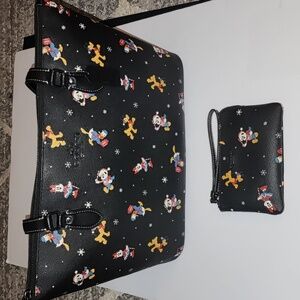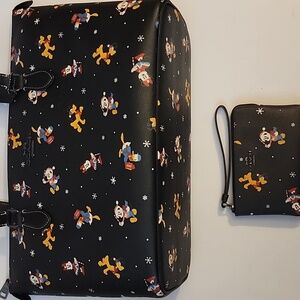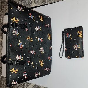 Coach Disney X Gallery Tote Bag and Wallet Set with Holiday Disney Characters. Tote and matching Wristlet featuring playful Disney characters. Perfect for everyday style.
