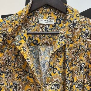 BALENCIAGA Mustard Paisley print blouse Ruffle Sleeves Tie Neck size 36 FR Small