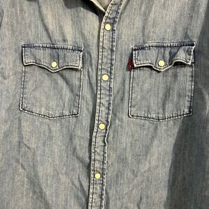 Keywords: Levi's shirt, Mens denim shirt, Western shirt, Long sleeve shirt, Snap button shirt, Blue denim, Casual shirt, Workwear shirt, Classic denim, XXL shirt, Levi Strauss, Button down shirt, Plaid shirt alternative, Rugged style, Everyday wear