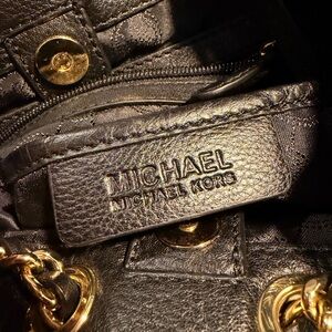 Michael Kors Black Leather Satchel Bag with Gold Chain
