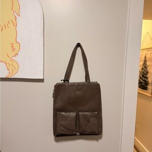 Stylish brown textured handbag with durable handles. Perfect for everyday use.