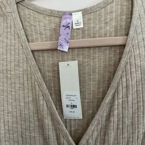 NWT Francesca’s Heather Oat Ribbed Wrap Jumpsuit Size L