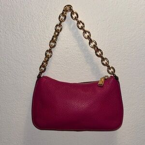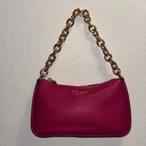 Vibrant fuchsia crossbody bag by Kate Spade. Features a striking gold chain strap. Perfect for adding a pop of color.