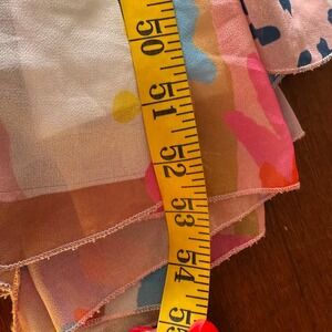 Radiate vibrant energy in this HUTCH maxi dress, a masterpiece of abstract floral artistry. Flutter sleeves cascade gracefully, framing a plunging neckline adorned with playful ruffles that cinch at the waist, creating a flattering silhouette. The open back, secured with a charming tie, adds a touch of allure, perfect for dancing under the stars. Its flowing skirt moves with every step, designed to make you feel effortlessly beautiful. Ideal for garden parties, beachside weddings, or a romantic sunset dinner.