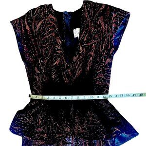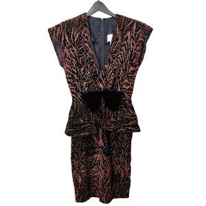 Velvet + Copper Vintage Sparkle Sheath dress w/peplum V neck + Bow Y2K Mobwife