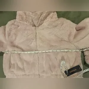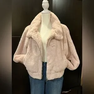Faux fur cropped jacket. Front zipper, 2 pockets. Subtle pink. Size L. NWT