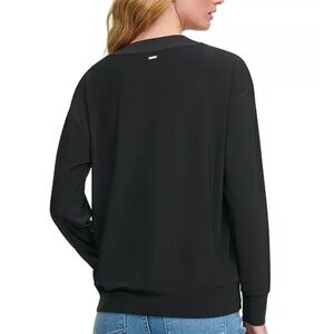 DKNY Black Faux Leather V-Neck Top Size Small