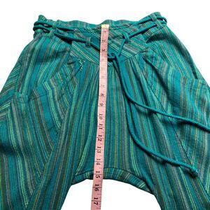Free People Harem Pants XS Teal Woven Stripe Drop Crotch Boho Festival