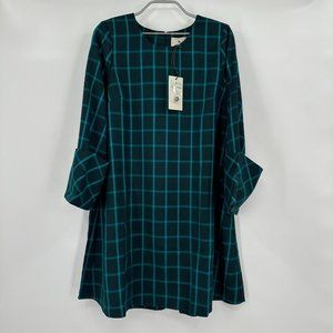 Tuckernuck Aegean Teal Chambers Swing Mini Dress Exaggerated Cuff Mod 60s sz M
