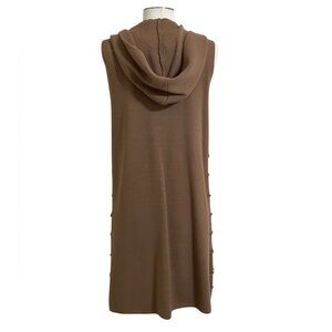 LUII Brown Knit Sleeveless Hoodie Sweater Long Duster Cardi Medium