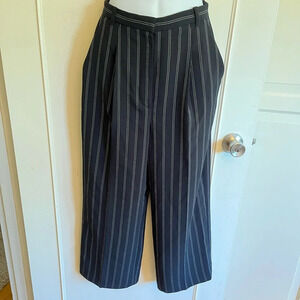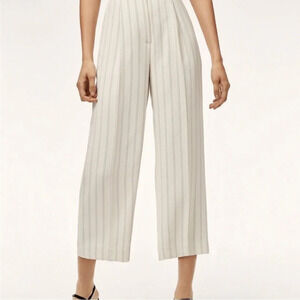 Wilfred Talin Black White Striped Crepe Wide Leg Cropped Pants Size 4 office.