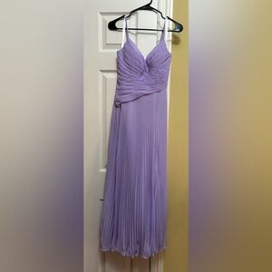 Chic lavender maxi dress with pleats. Ideal for any occasion. Bridesmaid/formal. Petite, fits someone 5 foot. Size 0 to 2.