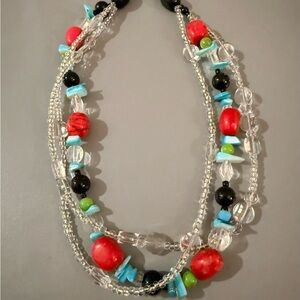 Statement Natural Gemstone and Glass Triple Strand Necklace LIKE NEW