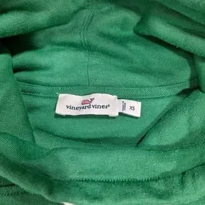 Vineyard Vines Green Collegiate Relaxed Funnel Neck Shep Shirt, Drawstring Closure, Thumb Holes, Side Slits, Terry Cloth Inside, Excellent Used Condition
