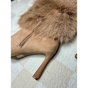 Bamboo Camel Tan Faux Fur Stiletto 3.5" Heel Knee High Point Toe Boots Size 11