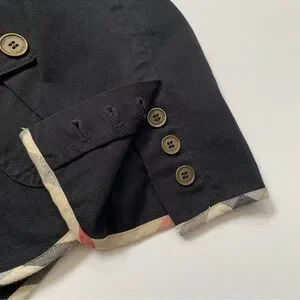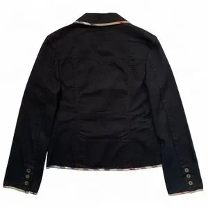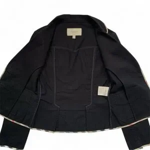 Burberry London Check Trim Unlined Cotton Blazer Jacket Black Size US 6 in Excellent Condition