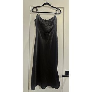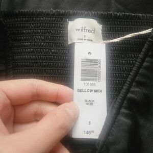WILFRED Bellow Satin Midi Dress Black Minimalist Contemporary Size 8 Aritzia NWT