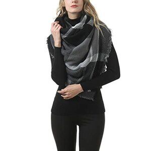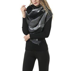 Oversized Plaid Blanket Scarf Chunky Winter Shawl Wrap Cozy Warm Fashion