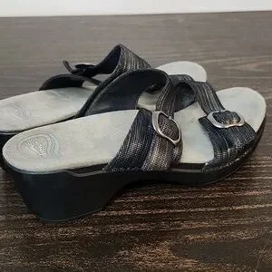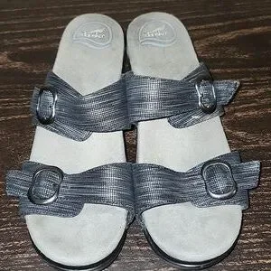 Dansko size 40 black sliver Slides Wedges Sandals Leather