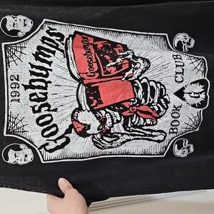 Black tee with Goosebumps logo. Comfortable cotton fabric.