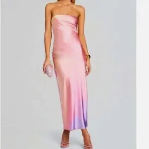NWOT SER.O.YA CERITH SILK STRAPLESS MIDI DRESS SUNSET TIE DYE