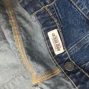 Denim tote with Guess logo. Features leather patch detail. Ideal for everyday use.