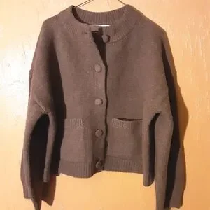 Cozy and stylish brown sweater perfect for any occasion. Features a classic design with front pockets and button closure.