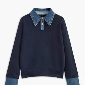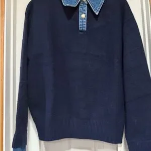 Preppy, classic sweater featuring a denim collar and cuffs. Excellent quality that will last for years, not just in durability, but in timeless style. Unfortunately, this one is too large for me and I missed the return window. I wanted an oversized look but didn’t realize that it was already somewhat oversized. I loved it so much that I reordered it in my normal size and it’s perfectly oversized. Highly highly highly suggest!!