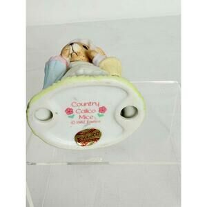Enesco Vintage Country Calico Mice Figurine With Umbrella Porcelain