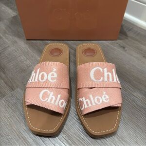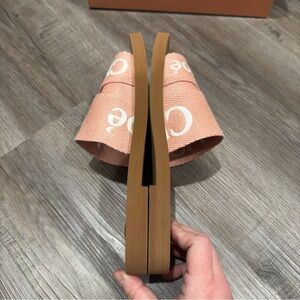 Chloe Woody Logo Sandal Slides in Light Rosewood