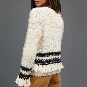 NWT Anthropologie Cora Fringed Eyelash Sweater Ivory Size S Small