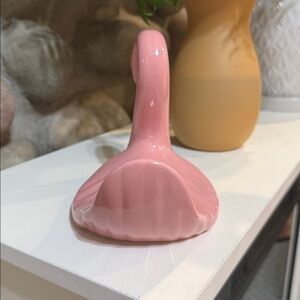Elegant vintage mid-century pink ceramic swan dish — pastel pink glaze with beautiful sculpted feather detail and graceful curved neck. Perfect for vanity styling, jewelry, keys, or as a decorative catch-all bowl.