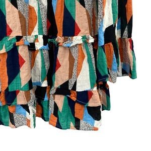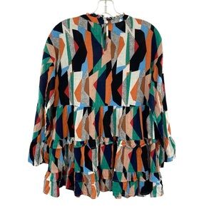 Jodifl Geometric Patchwork Tiered Ruffle Babydoll Top Size small. In excellent condition, no flaws. Laying flat measurements: 29” long, 20” across armpit to armpit.