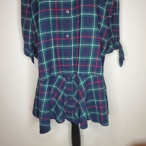Ruffle Hem Plaid Shirtdress Size L