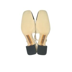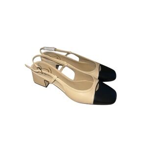 Sam Edelman Tarra Shoes 7 Summer Sand/Black Cap Toe Block Heel Slingback Sandal