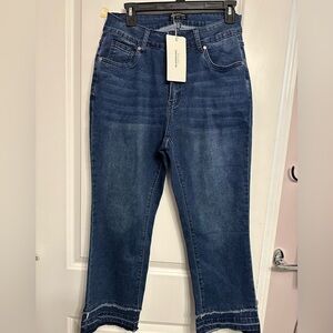 BloomChic Bootcut Stretchy High Rise Dark Wash Fringe Detail Jeans