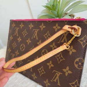 💕 LOUIS VUITTON Neverfull Monogram "PEONY" Mm/Gm Clutch/ Wristlet/Crossbody