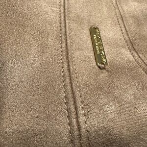 Tan/ Taupe Faux suede pencil skirt by Andrew Marc Mew York. Sleek and versatile design. Last photo is rear view. Gorgeous and has stretch to it for extreme soft comfort. Designer piece. Brand new with tags .