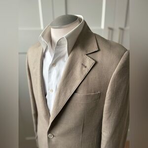 Refined casual elegant sand colour blazer by Brunello Cucinelli - made of wool, silk and linen.