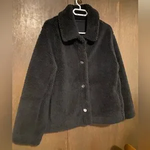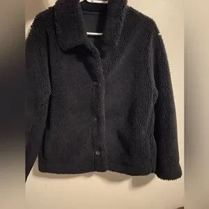 Uniqlo Cozy Black Fleece Teddy Jacket with Buttons (L)