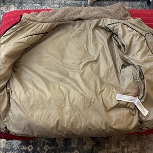 Massimo Dutti Feather down filled puffer jacket brown and tan Med. Like New.