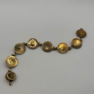 Vintage handmade Argitina coin bracelet brass clasp with tiger eyes