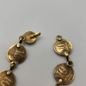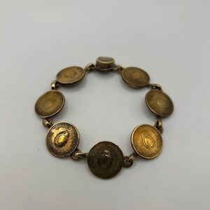 Vintage handmade Argitina coin bracelet brass clasp with tiger eyes 121825-110109