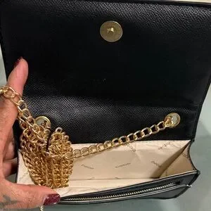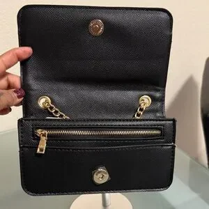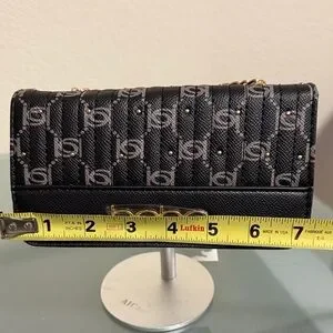 Bebe Black & Gray Logo Clutch w/Gold studs. Cinzia printed monogram crossbody
