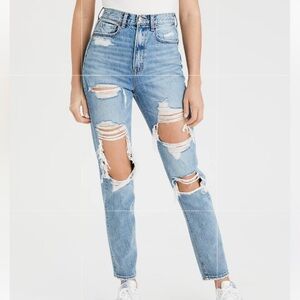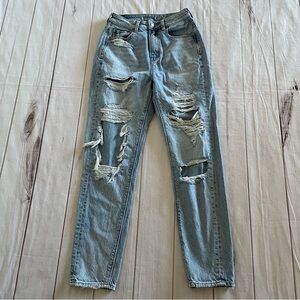 American Eagle Highest Rise Mom Jeans Women’s 00 Blue Distressed Ripped Comfort