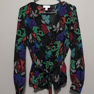 TOPSHOP Floral Button Front Blouse – Tie Waist – Size Small