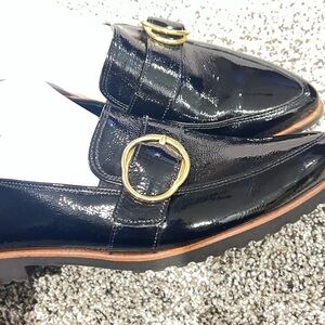 Paul Green patent leather loafers with a gold-tone buckle detail size US 9