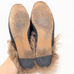 Authentic Gucci Princetown Tiger Horsebit Fur Loafers in black leather, size 37 (fits US 7). These iconic rare collectors’ edition mules feature a fierce embroidered tiger motif, signature gold horsebit detail, and luxurious fur lining. A favorite among celebrities and influencers, these loafers blend classic Gucci craftsmanship with statement style.